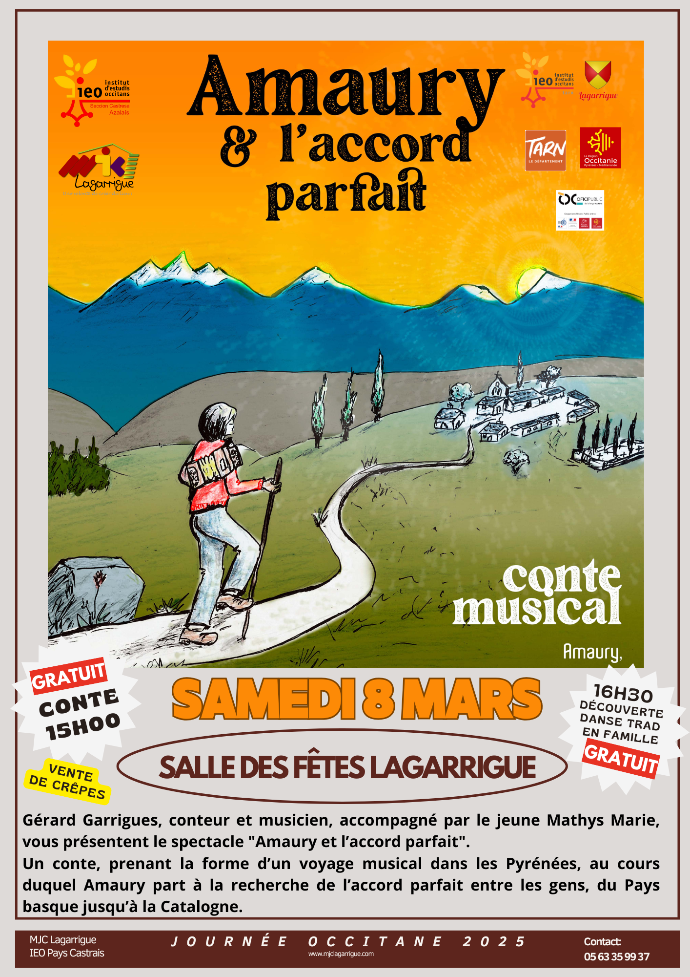 Cette journée occitane organisée conjointement par l’IEO Castres-COPC /MJC Lagarrigue débutera   par un spectacle GRATUIT tout public à .