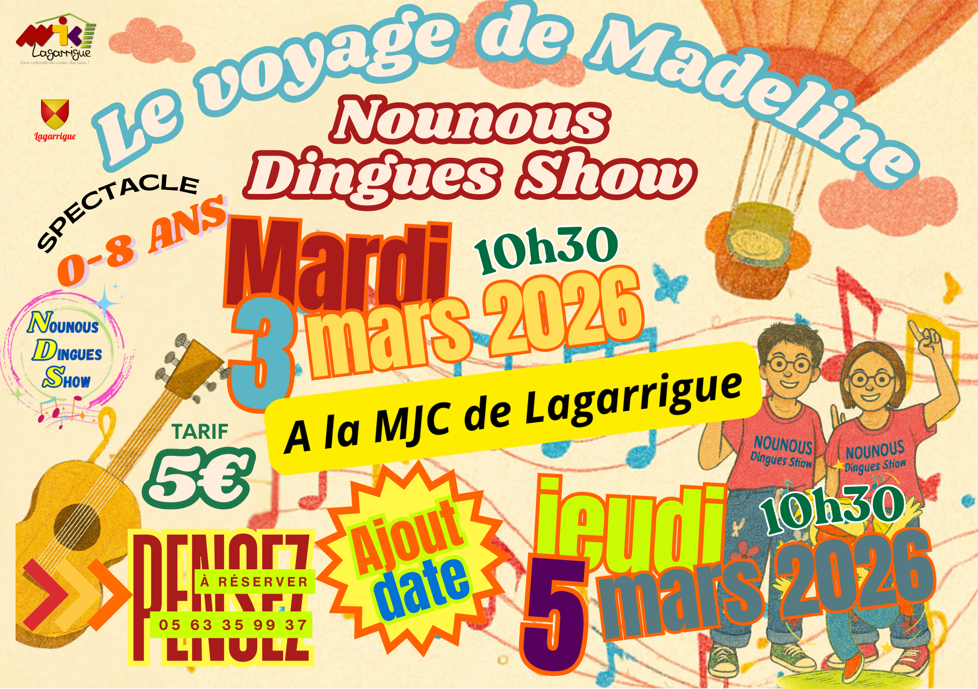 🎉 Avis aux petits aventuriers ! Le Nounous Dingues Show revient à la MJC de Lagarrigue avec Le Voyage de Madeline, un spectacle musical participatif […]