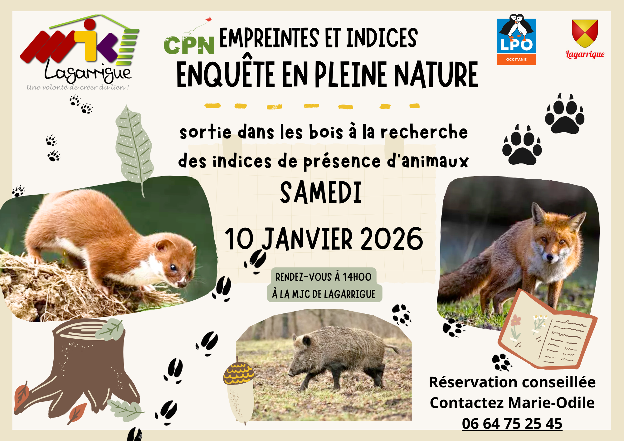 Sortie nature avec le Club CPN – MJC de Lagarrigue. Empreintes et indices : enquête en pleine nature https://www.mjclagarrigue.com/index.php?id=4853 Samedi […]
