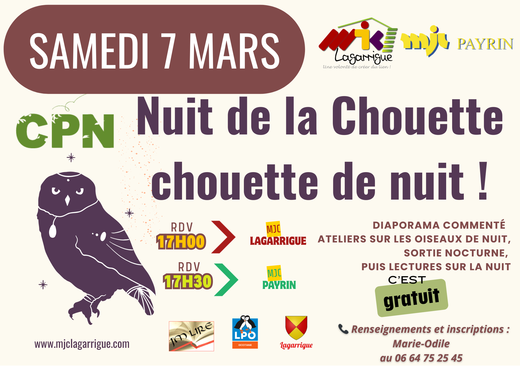 🌙 Nuit de la Chouette : chouette de nuit ! Une soirée pour découvrir les rapaces nocturnes autrement La MJC […]