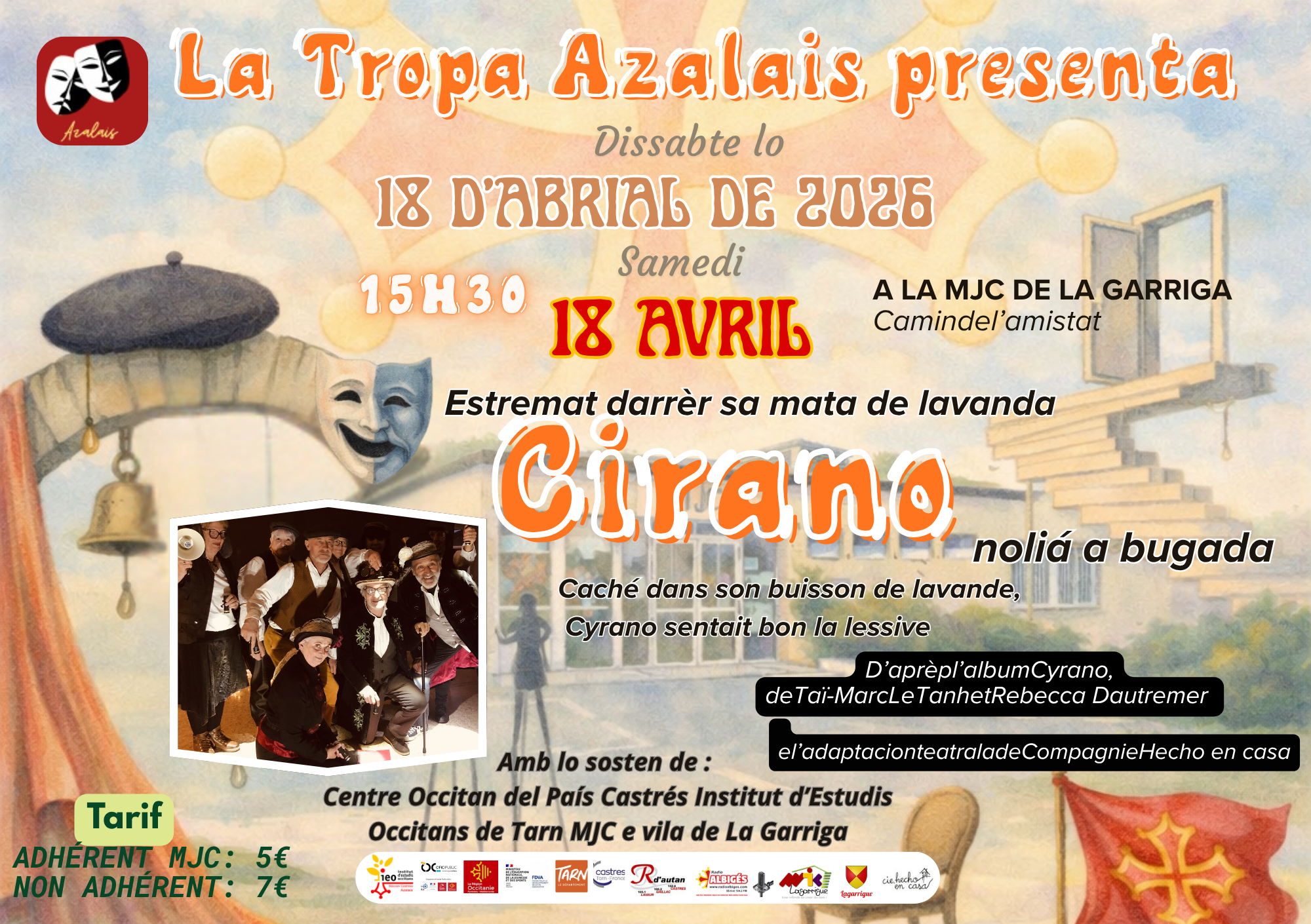 MJC Lagarrigue 13 Allée de l'Amitié, LagarrigueSamedi 18 avril à 15h30, la MJC de Lagarrigue accueillera un Cyrano qui sent bon la lavande et la lessive […]